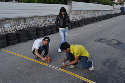 Por fim a recta ficou pronta para receber os pilotos, não sem antes se ter feito a respectiva marcação das linhas que delimitam as zonas entre as quais são efectuados os exercícios.
