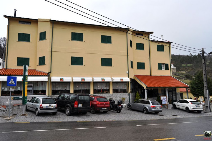 O Covão d'Ametade é um local de paragem obrigatória, com boas memórias para os motociclistas que por lá passaram, nos Lobos da Neve e mais recentemente nos Eskimós. A entrada estava muito degradada mas não entendemos muito bem porquê, vai ter mesmo que entrar em obras. A chuva logo que chegámos começou a cair e lá tivemos de vestir os impermeáveis. Acabou por ser uma paragem breve, a fominha também já falava mais alto.