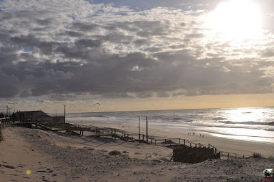 Saímos de Águeda em direcção à praia de Mira. A temperatura, embora fresca, estava agradável para uma passeata. Seguimos na direcção da Malaposta, passando pelas grandes vinhas da Bairrada, agora em repouso a aguardar por mais um ano vinhateiro, que se espera seja bom. Passámos ainda pela Poutena, terra do motocross e supercross, antes de chegar à Praia de Mira.