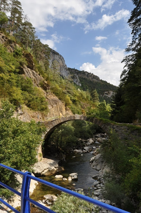 Breve vista sobre a Ponte Napoleão III, lá voltaríamos com mais tempo e boneco pitoresco, dos vários que fomos encontrando à beira da estrada, pelos diversos percursos percorridos, deram início a mais uma passeata pelo Parque Nacional dos Altos-Pirinéus.