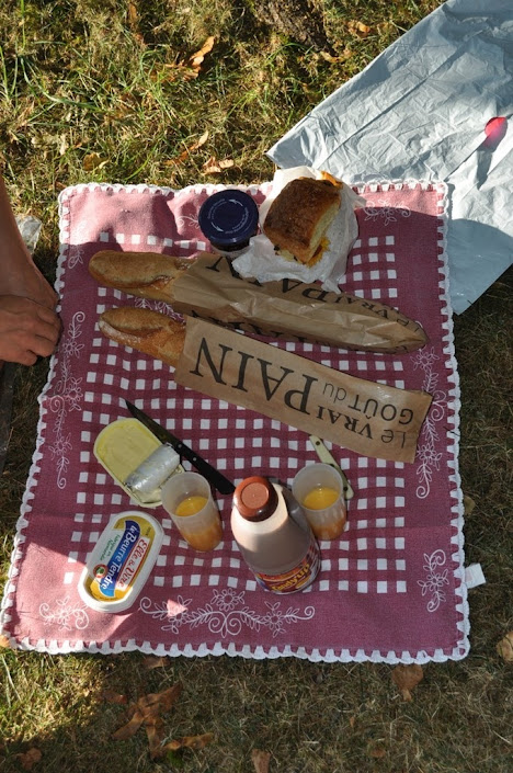 Só de ver a malta das bicicletas já se fica cansado, pelo que convém tomar o pequeno almoço reforçado. Nada como uma boa baguette, uma saborosa chocolatine, acompanhadas de leite chocolatado, É só calorias,eheheh!!
