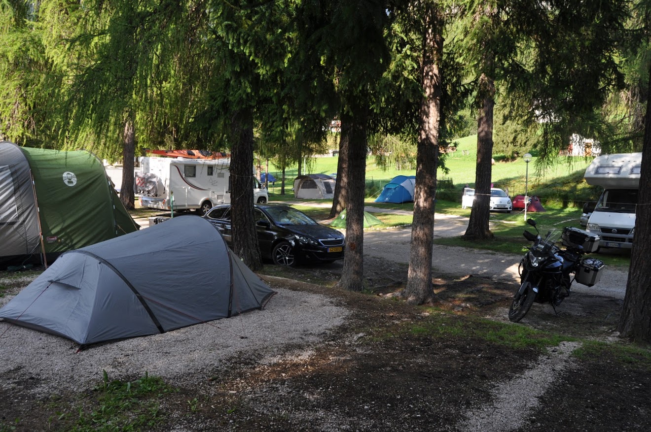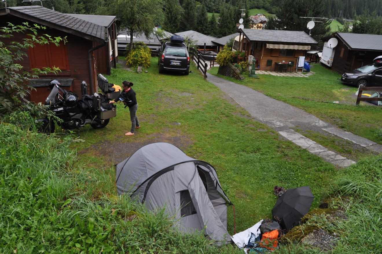 O nosso "campo base" foi o camping Rocchetta. Mal pudemos montar a "barraca", pois a chuva apareceu em força, logo a seguir a estarmos instalados. O recepcionista que bem conhece o tempo disse logo: "Vão lá montar a tenda e voltem depois!"