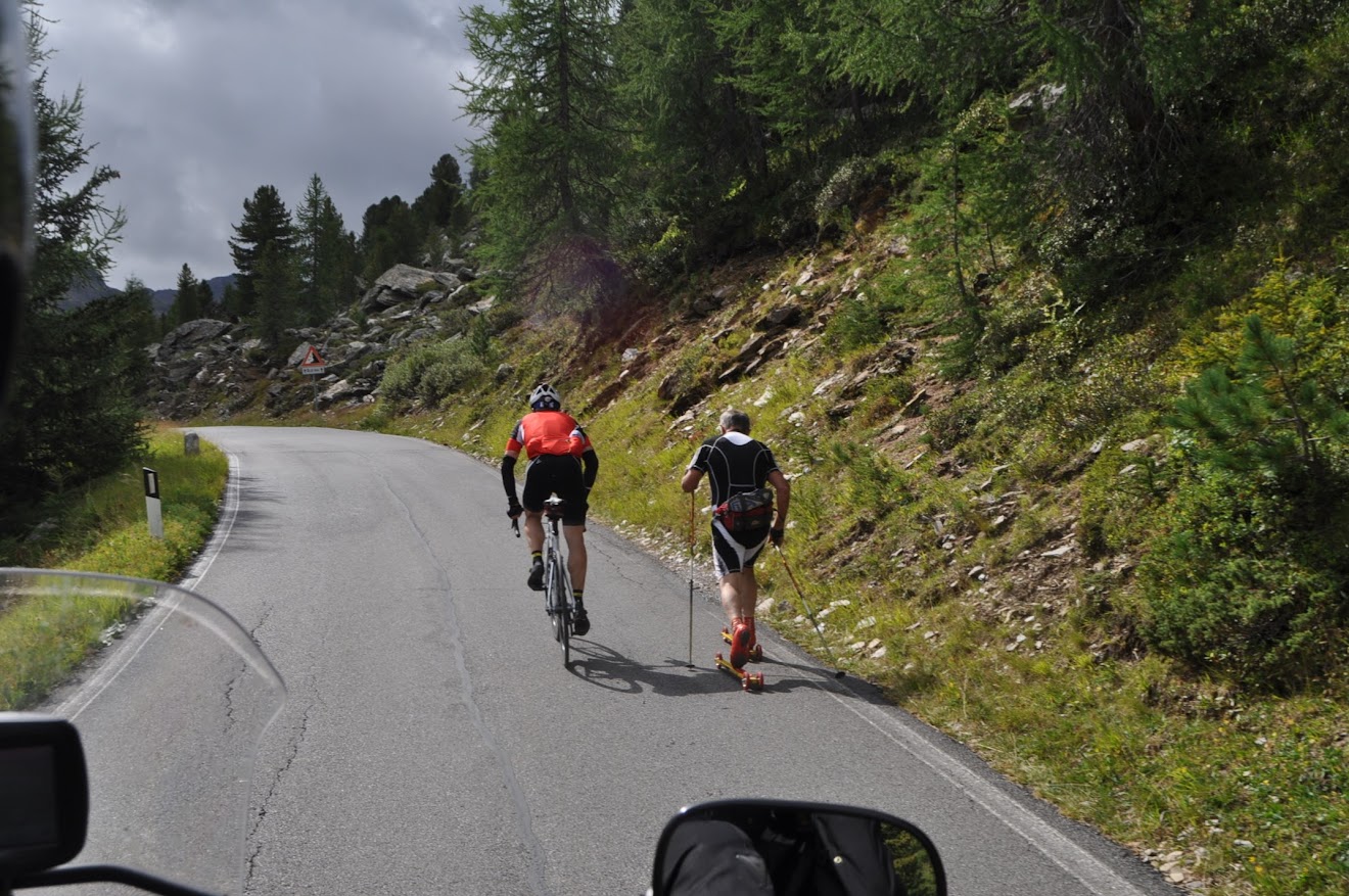 A meio da tarde lanche e ajuda a um companheiro alemão que andava perdido. Seguimos até ao Lago di Livigno antes do regresso. E mais um passo, o Pass dal Fuorn com 2.149 metros de altitude. O que nunca faltaram foram belos passos para conhecer e transpor, numa autêntica montanha-russa!
