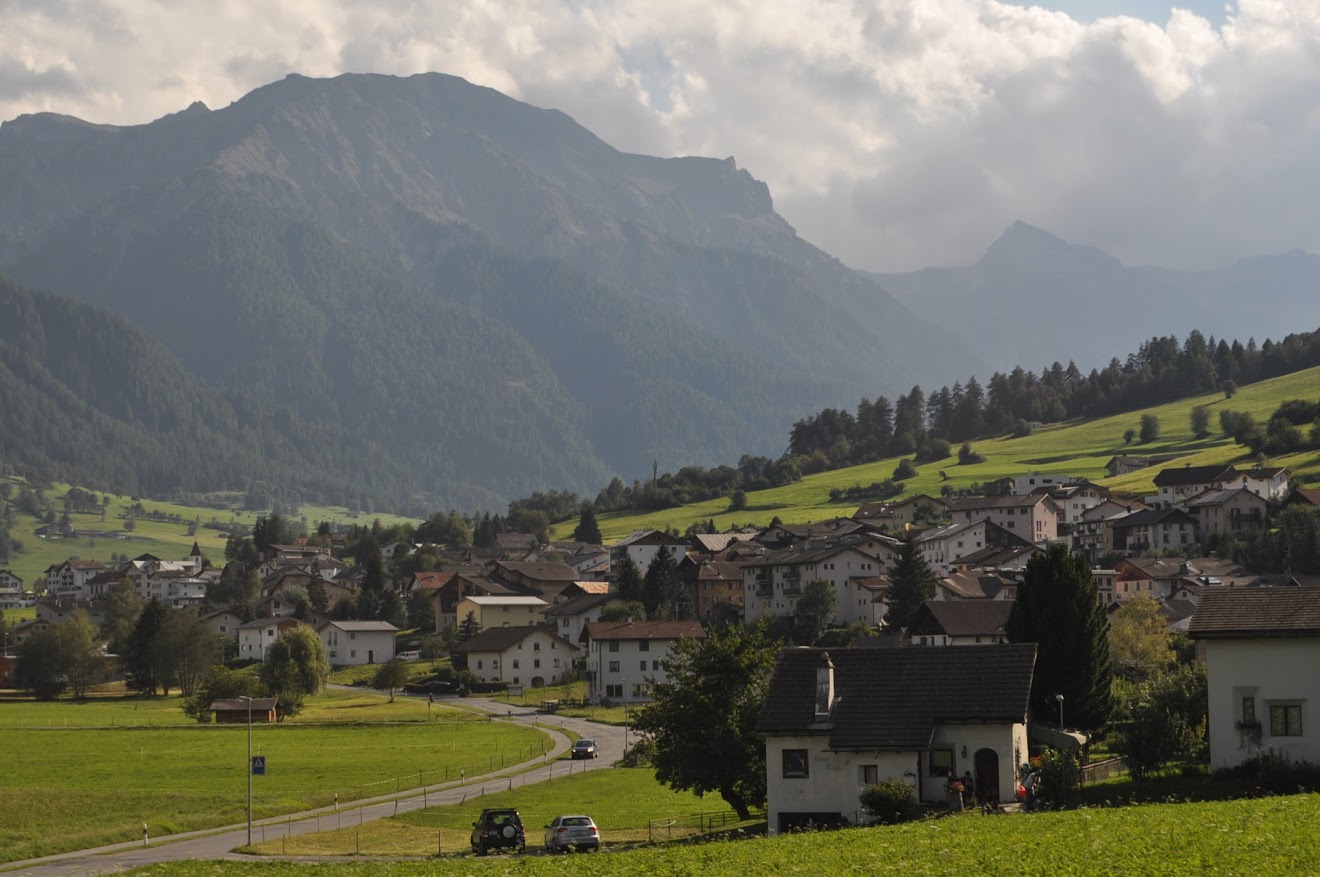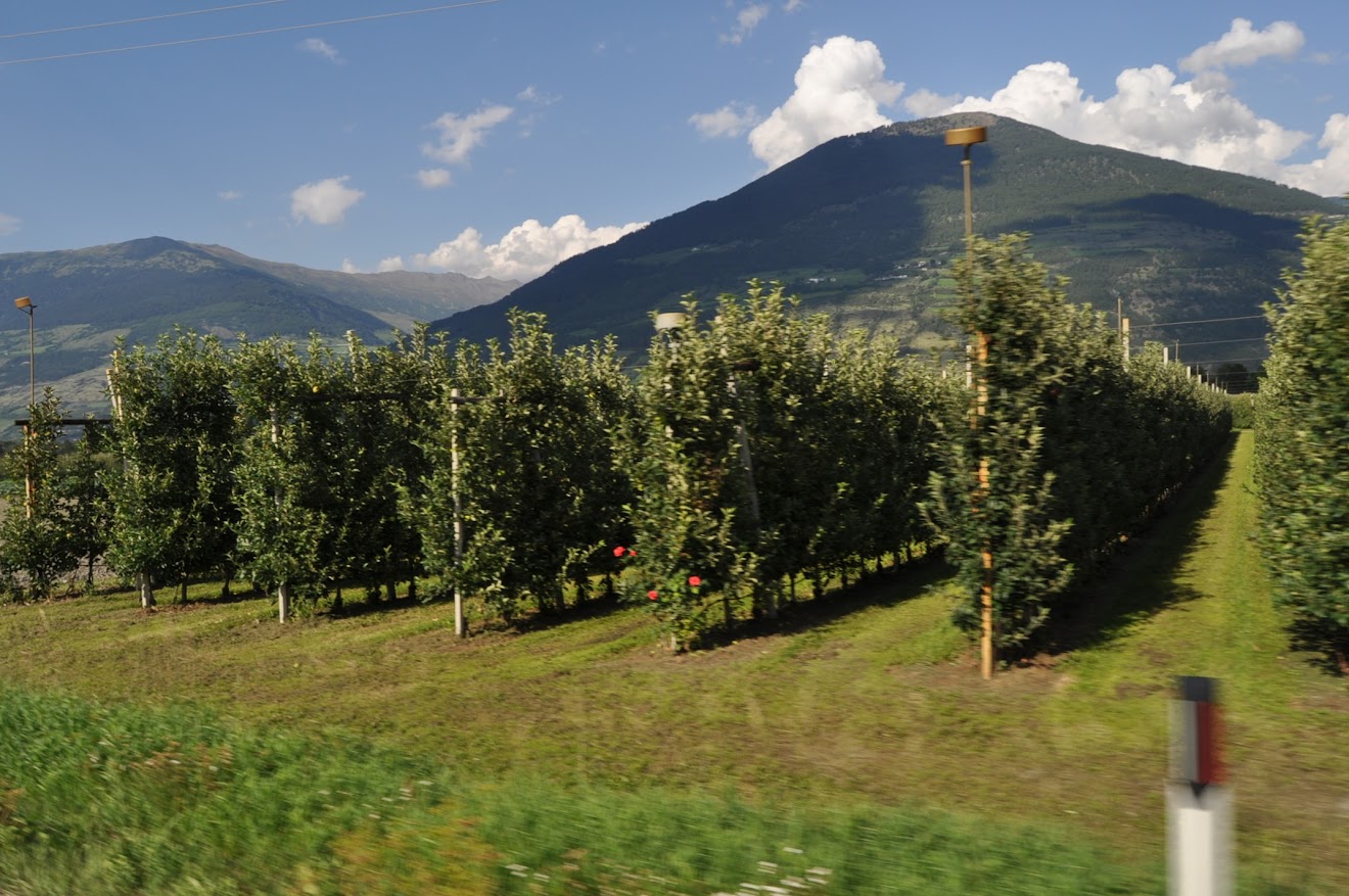 Contornámos o limite do parque nacional entre grandes pomares e entrámos na Suíça. Que maravilha de paisagens e as suas aldeias, em zona classificada pela Unesco!