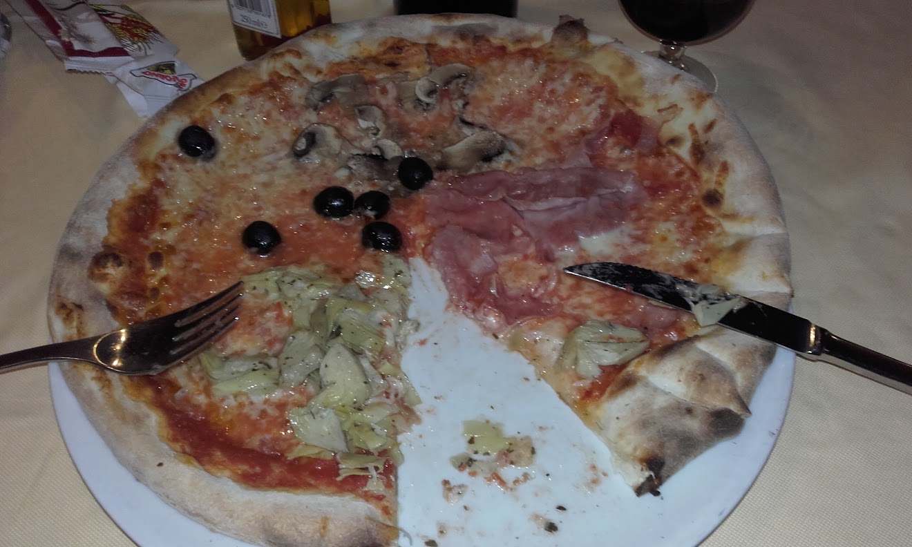 Ao lado existe um simpático restaurante no camping vizinho e lá fomos comer mais umas pizzas. Era o que havia e soube muito bem!