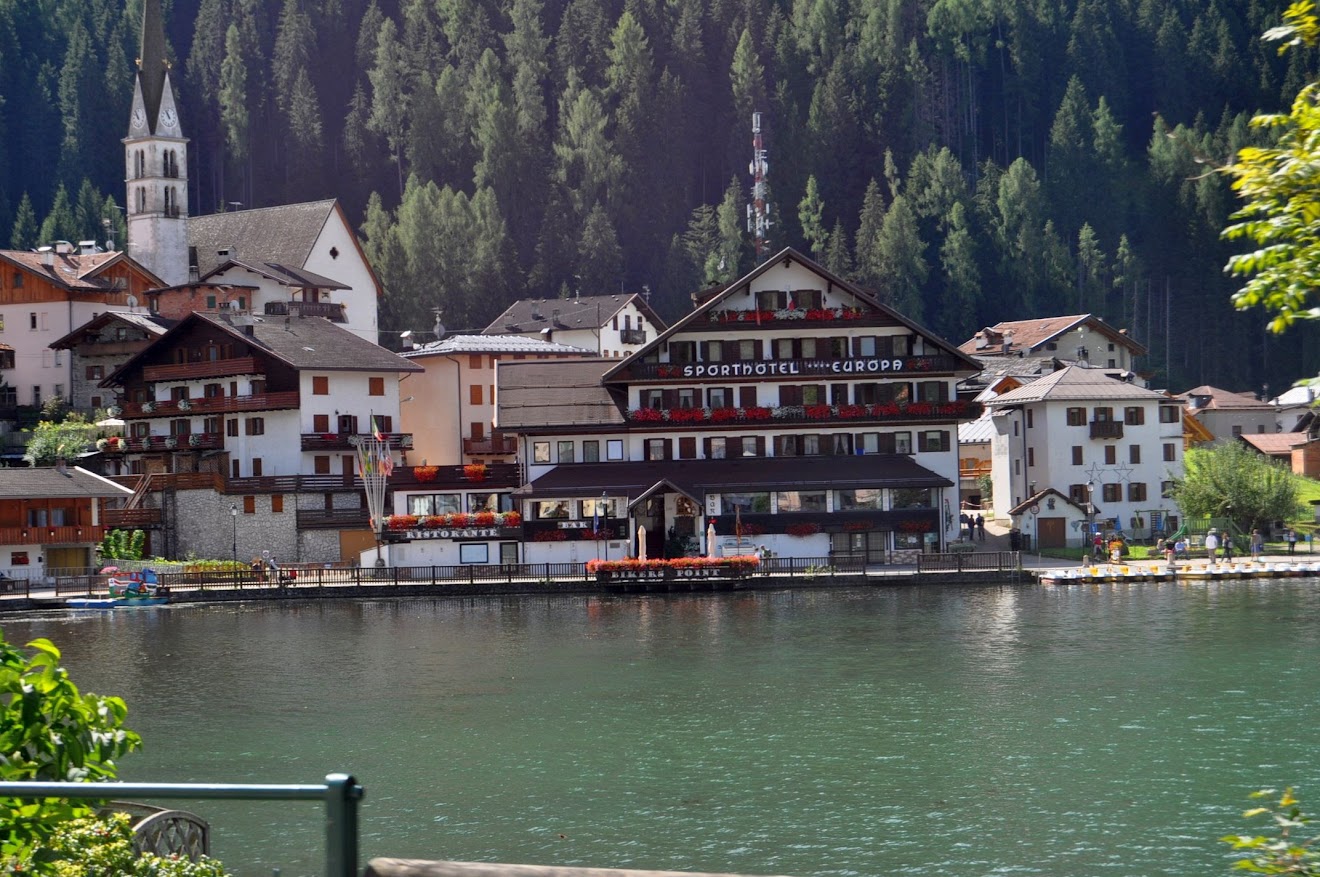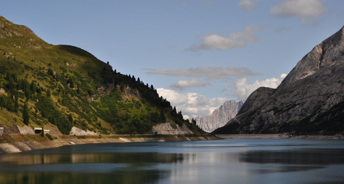 Passagem breve por Canazei, terra com tradição no Giro e mais um bonito passo, o Passo Fedaia (2.057m) com o seu lago.