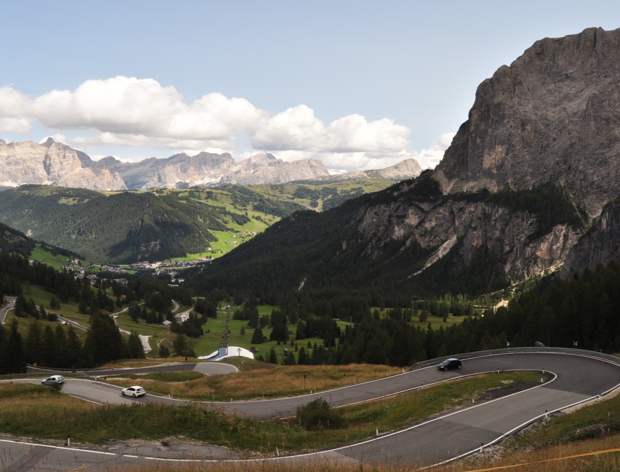 De volta à estrada, o percurso deslumbrava. Que soberba passagem pelo Passo Gardena (2.136m).